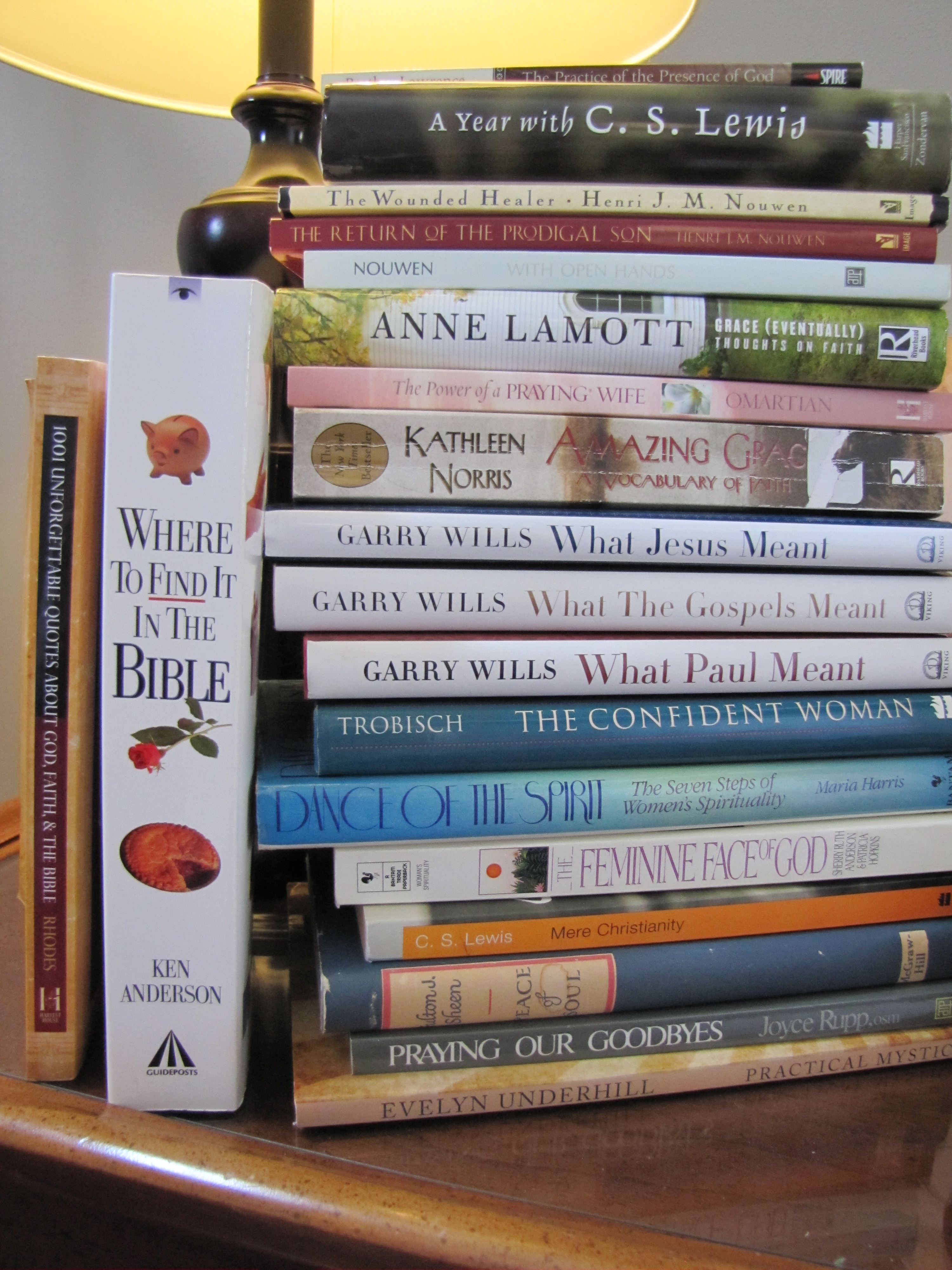I have such a good time there, that I just walk in and march my little ol’ self up to the religion section, and I start throwing books in my bag. I hardly have to even think about it…you know why? Because the books are DIRT CHEAP! (And by dirt cheap I mean if it’s $3.00, I may just put it back!)